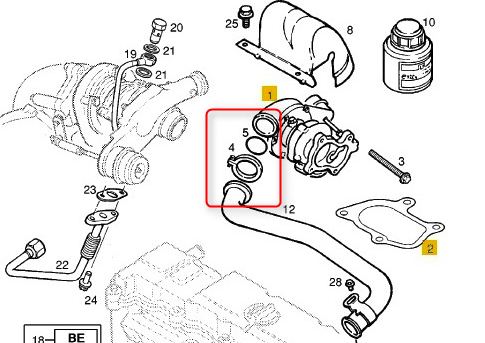 zauważyłem u siebie nieszczelność na łączeniu zaznaczonego elementu z załącznika (rura wysokiego ciśnienia?). W mojej ocenie potrzebuję nowej części nr. 4 i 5 (uszczelki i obejmy?). Z góry dziękuję za pomoc.