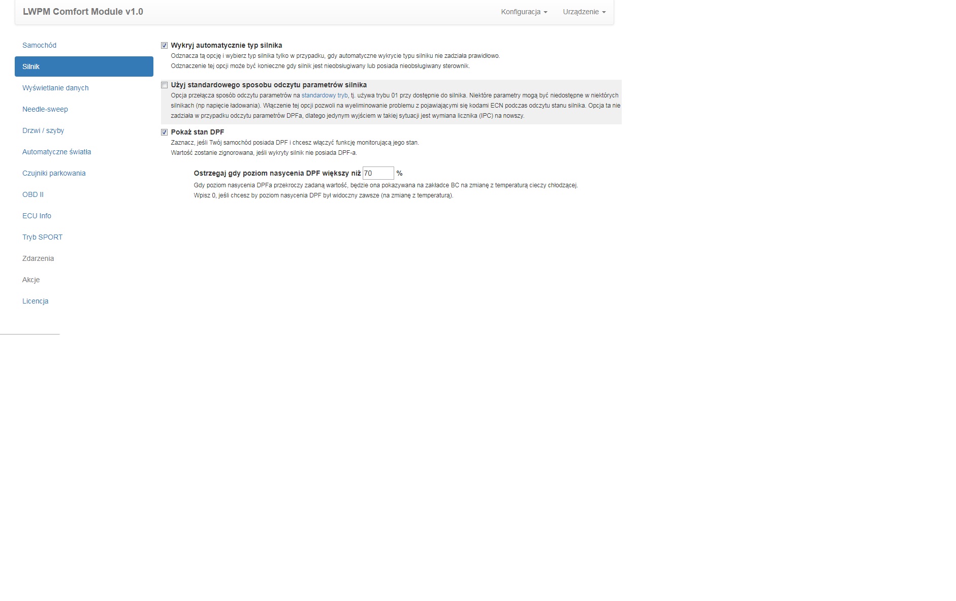 A czy w tym graficznym da się zrobić takie opcje jak np żeby moduł po starcie auta nie wskakiwał od razu na swoje okienko, czy np zmienić sposób wywołania okienka monitora zamiast teraźniejszego przytrzymywania bc? I np czy da się zmienić częstotliwość migania zapełnienia dpf i temperatury?