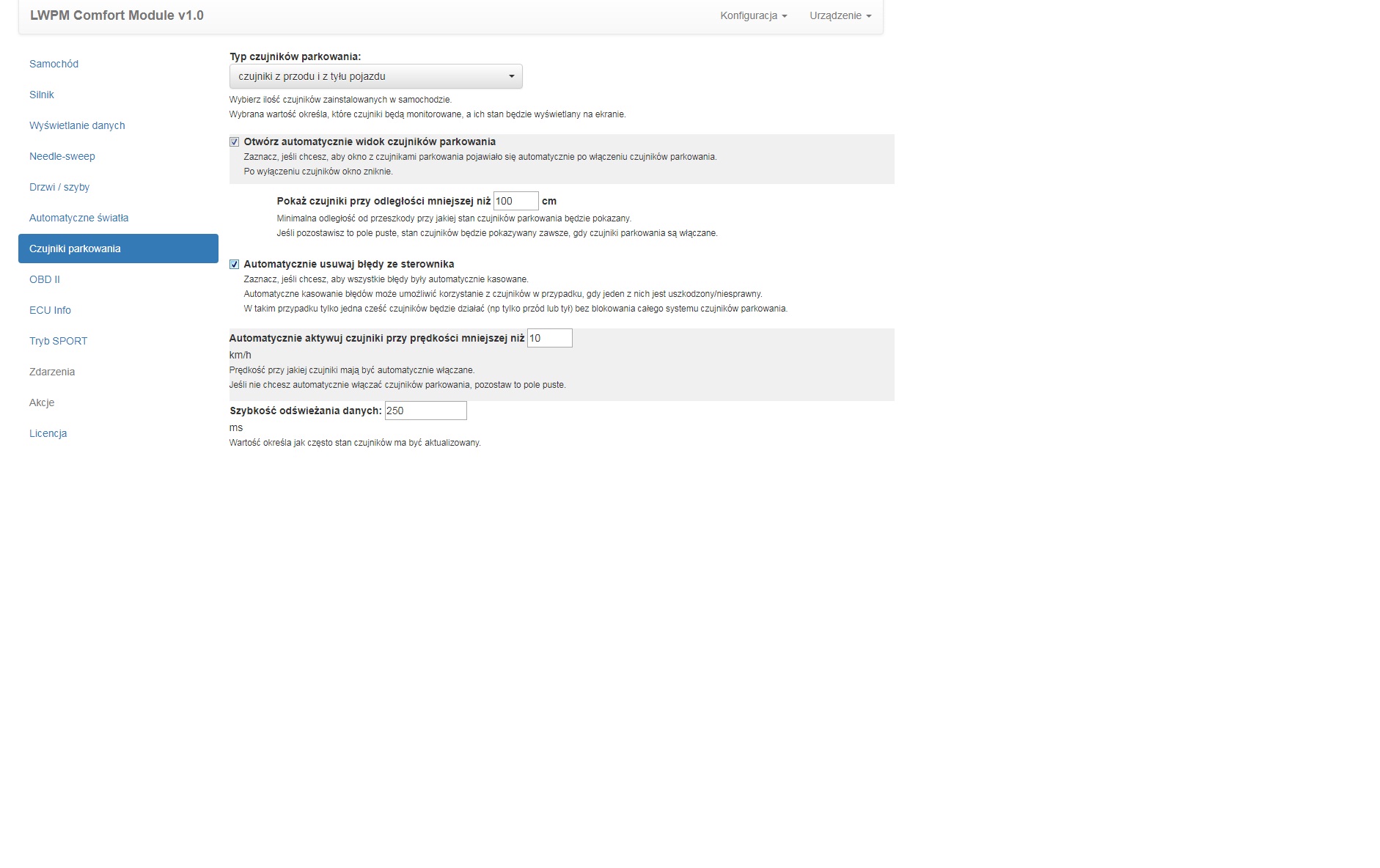 Czujniki parkowania
