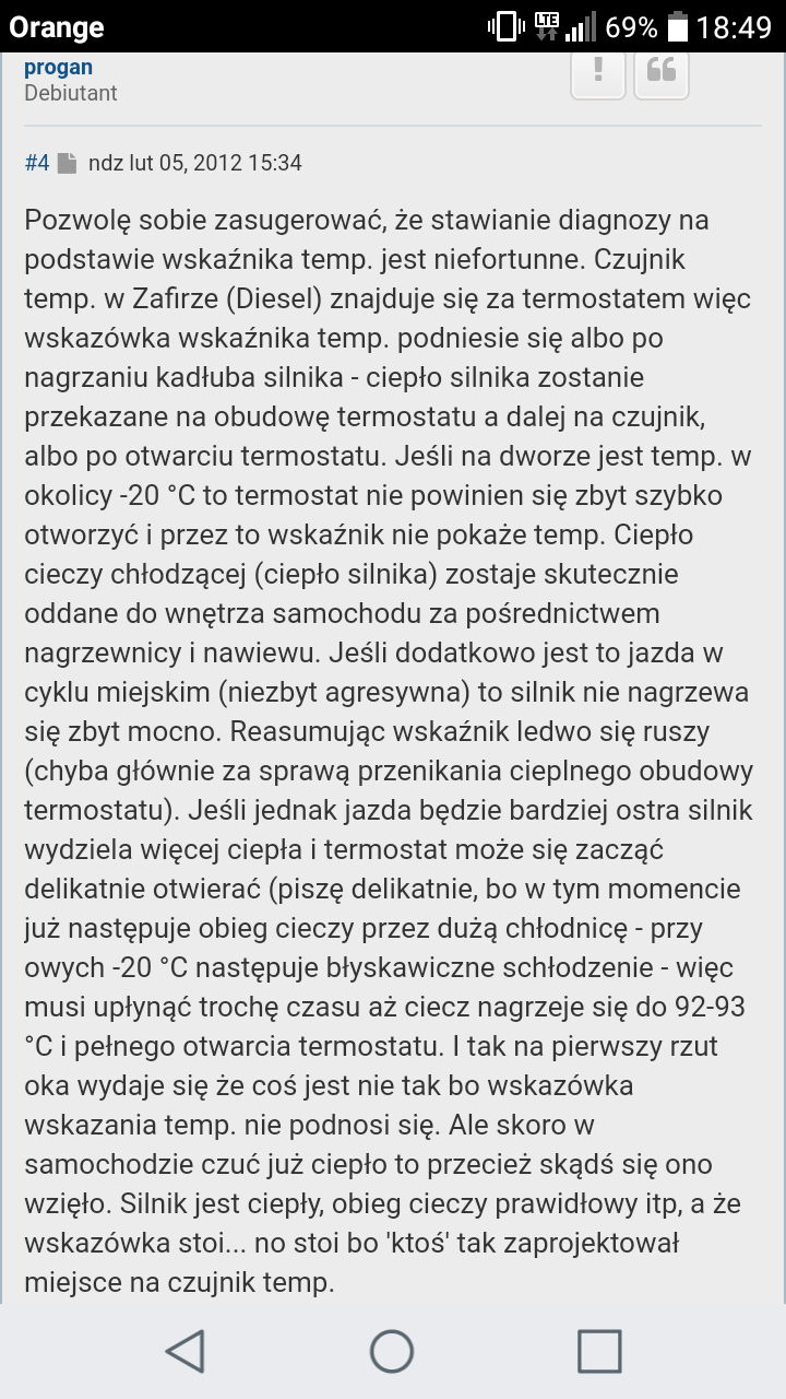 Czytam wasze forumJanus pisze: 04 mar 2018, 23:20 jak masz dobry termostat to majac na zegarach 80-85 stopni wąż do chłodnicy będzie chłodny. Sprawdzałem ręką osobiście po dotarciu termostatu. Wąż robi się wyraźnie ciepły po przekroczeniu 90