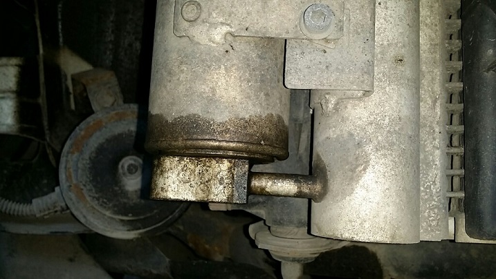 Zaolejony element klimatyzacji przy chłodnicy