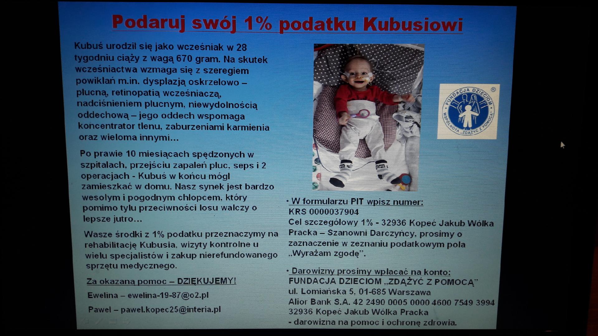 ponownie proszę o wsparcie forumowiczów 1% podatku na rzecz Syna Jakuba.