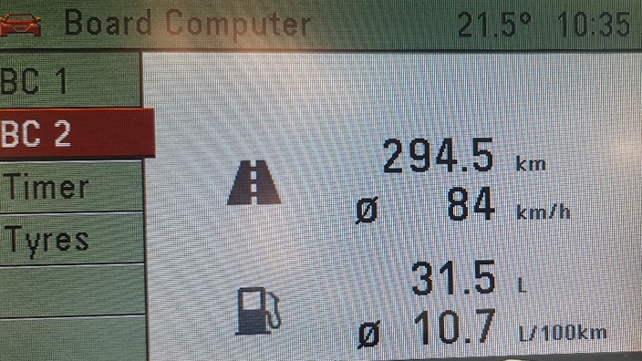 Pierwsza dłuższa trasa i średnie spalanie na poziomie 10,7 (13,3 gazu) ze średnią 84 km/h . Prędkości w Niemczech dochodziły do 200, więc chyba aż tak źle nie jest ;)