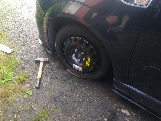 Wiem. Moja wina. Był wbity gwóźdź. Miałem jechać do szpeca od wulkanizacji, ale ... ale ...