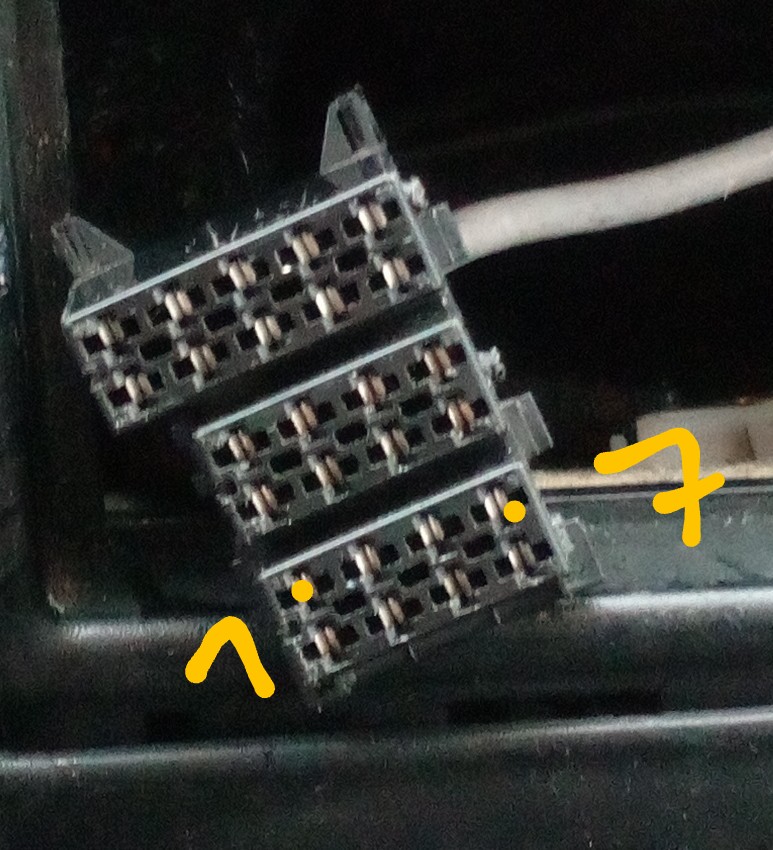 Czyli twoje 1 to 7 lecz na 4 powinno być 12V (ACC) po kluczyku i ten powinien być właściwy