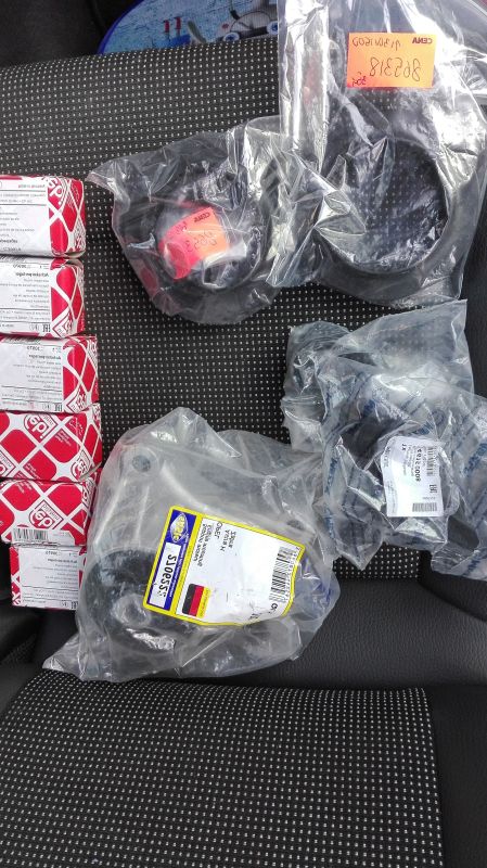 Tuleje sanek, łożyska amora, tuleje stabilizatora i poduszka silnika.