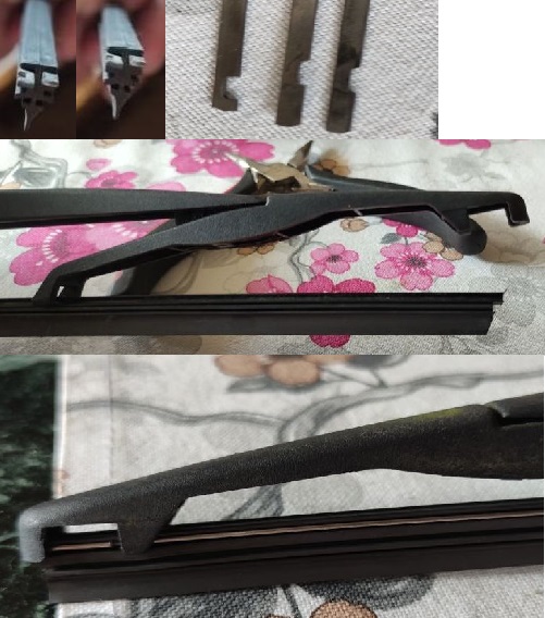 Podpowiem tylko jedną rzecz, nie wyrzucajcie przy ściąganiu starej wycieraczki tych drutów, prętów (jak zwał) bo bedą potrzebne do usztywnienia gumy.