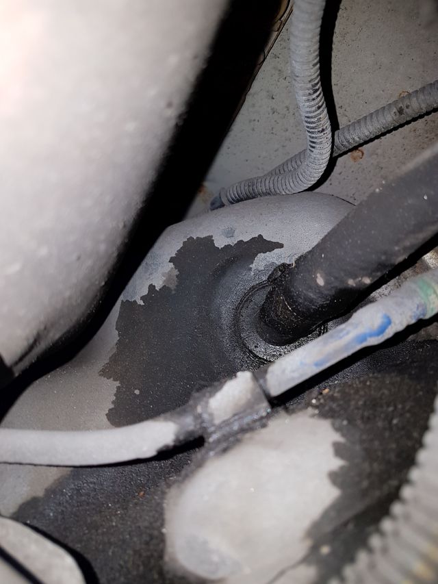 Dziś sobie poleżałem pod Zosieńką jako że wymieniałem piasty tylne i osłony metalowe piast i zauważyłem na zbiorniku paliwa takie dziwne plamy wilgotne...