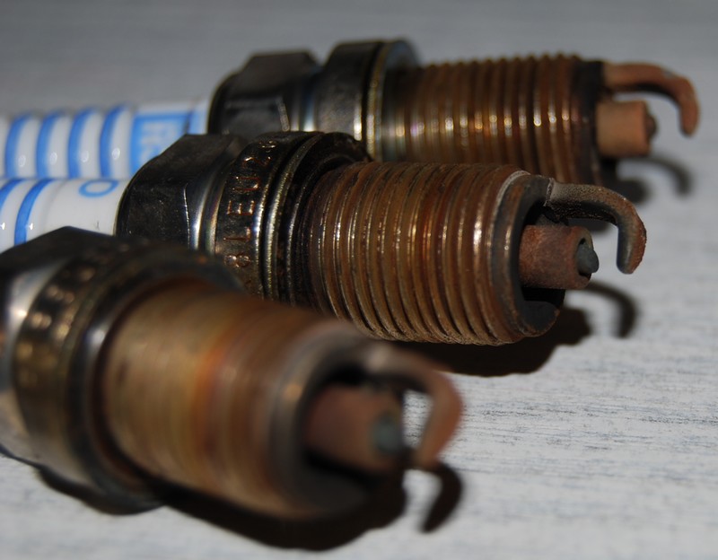 Zdjęcia nie bardzo oddają skalę zniszczeń ale przerwa to dobre 2mm. Że to chodziło bez problemów... Środkowe elektrody to już ledwo z porcelanek wystawały a masowe wypalone takie że się okrągłe porobiły...