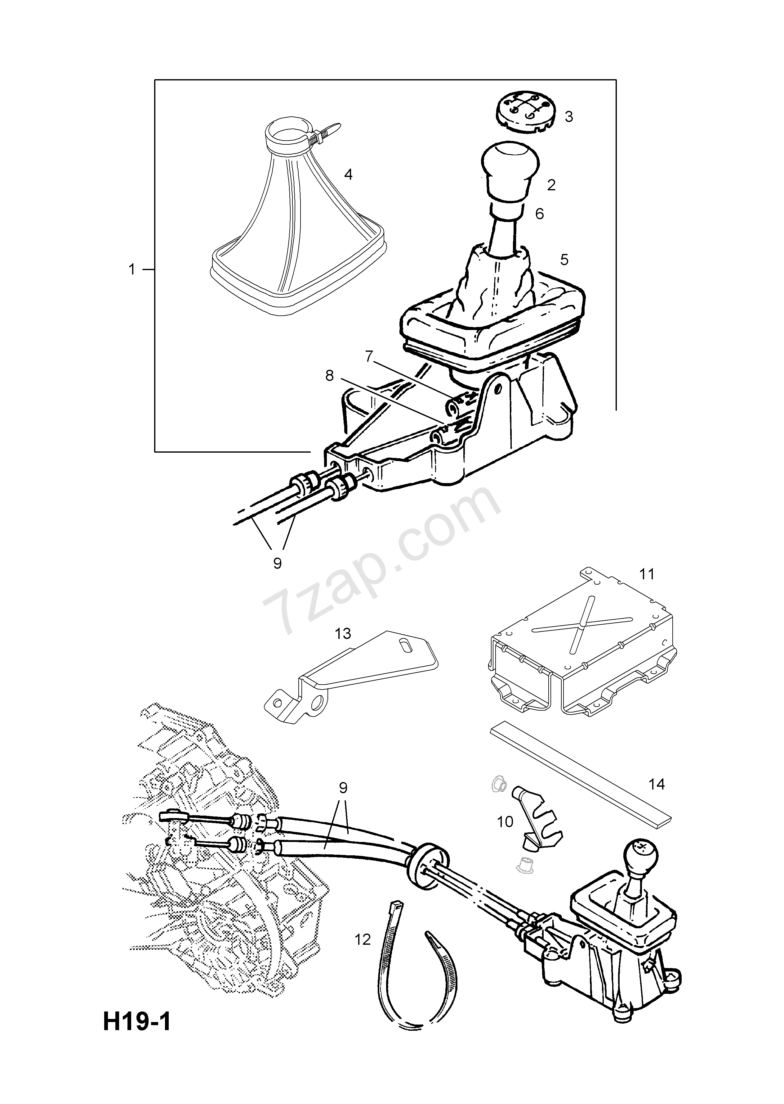 1- 7 38 114 13101894 DŹWIGNIA ZMIANY BIEGÓW,ZESP. (WZÓR ALUMINIUM) (OPC) (JNS - STOSOWAĆ 55350986 7 38 148)1