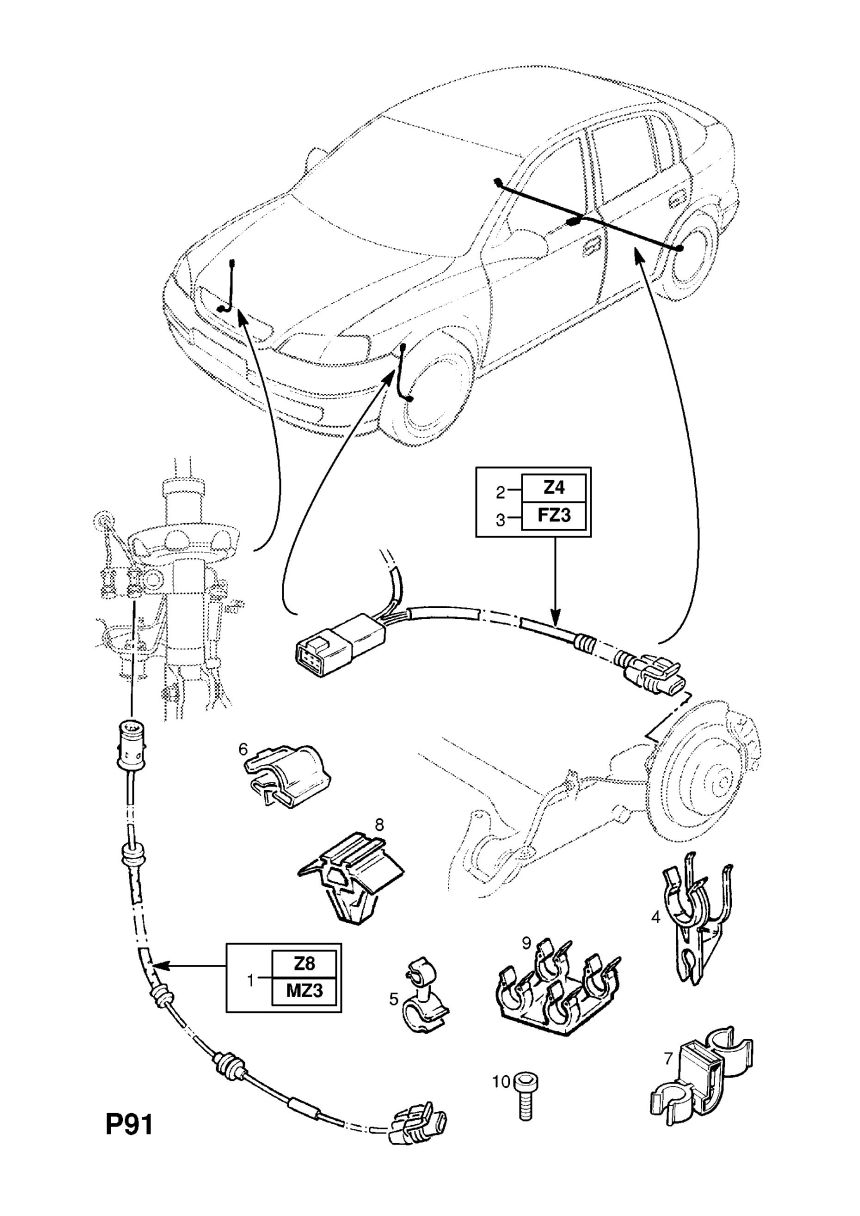 ⤷ 62 96 805 9131387 WIĄZKA,CZUJNIK OBROTÓW OSI,PRZEDNI(-A,-E) (IDENT MZ3) (DLA ABS) 2