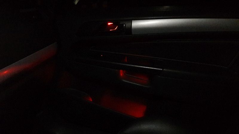 Na razie skończona prawa strona. Przy okazji zrobiłem podświetlenie schowka w drzwiach i uchwytu.