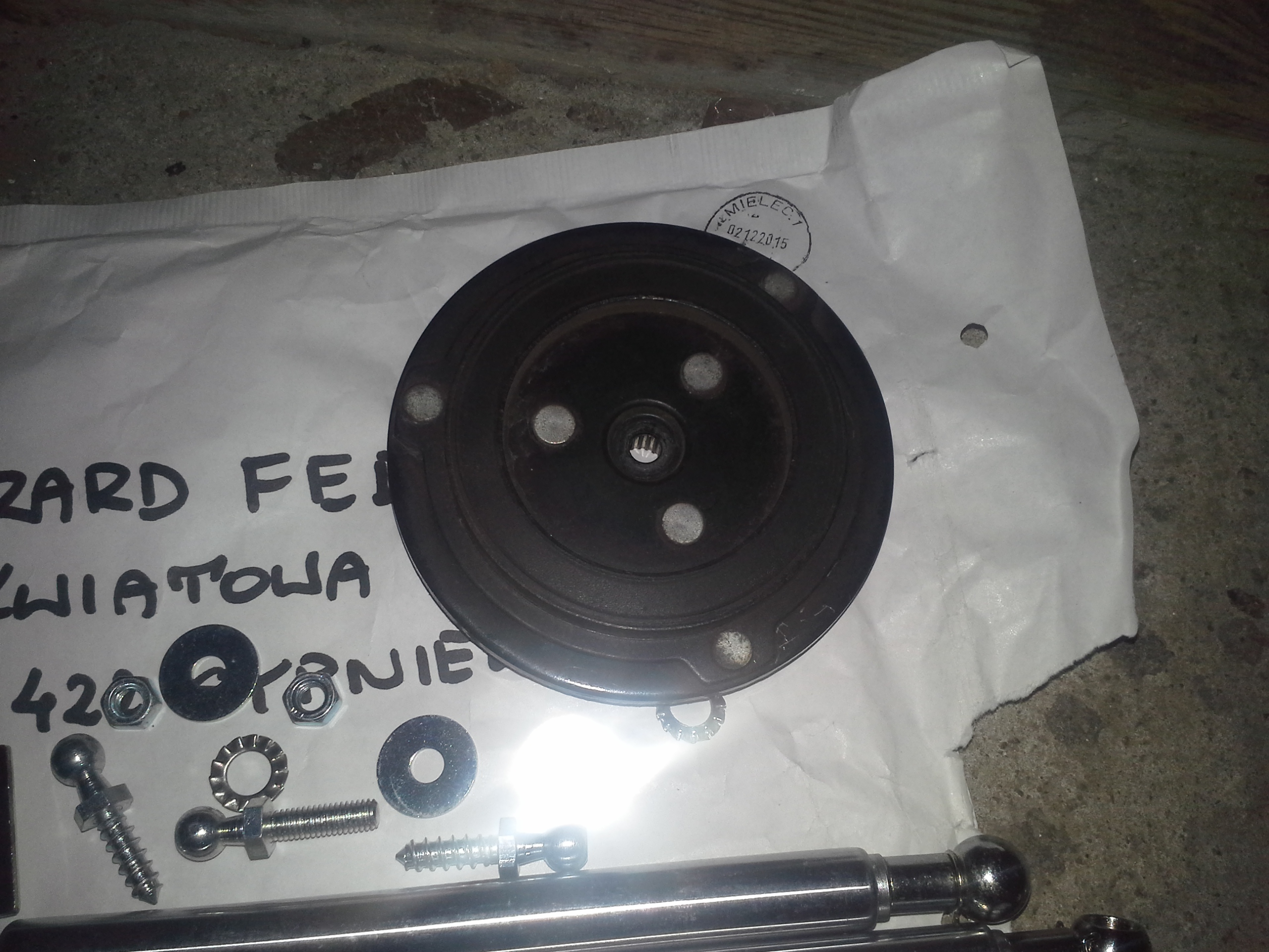 Dotarł dzisiaj również ten talerzyk sprzęgła klimy oczywiście montaż natychmiastowy :> użyłem takiego kleju do śrubki