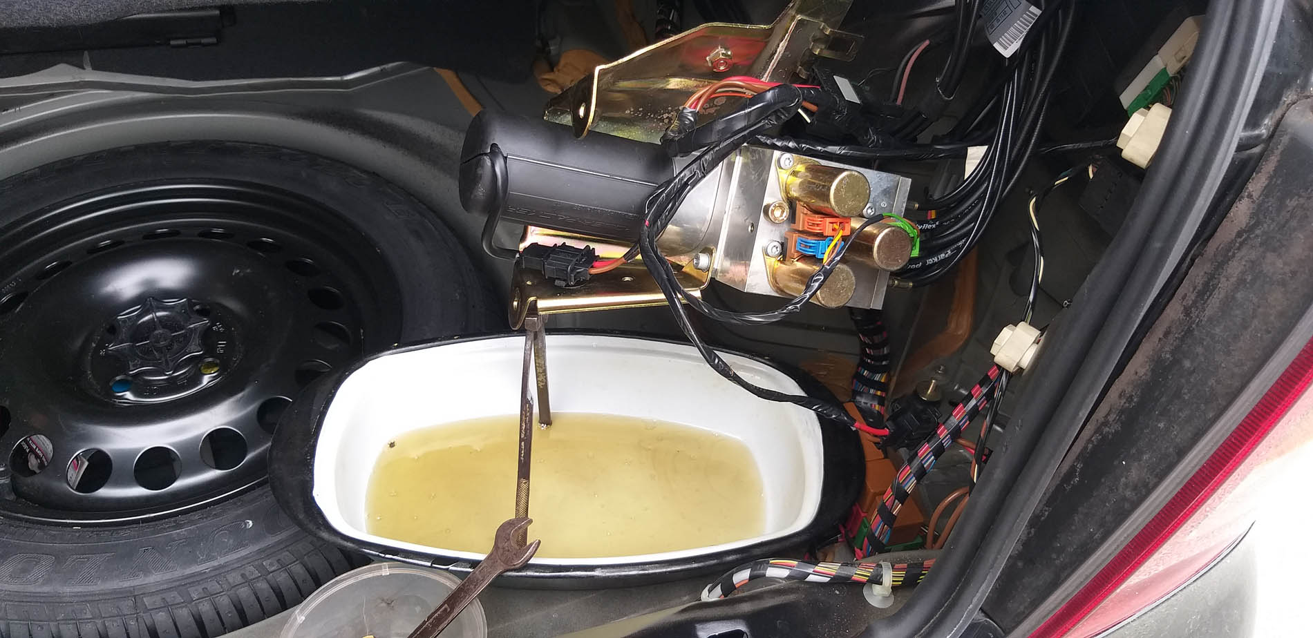 Ten weekend też spędziłem przy Bertonce. Okazało się bowiem, że mam niedobór płynu w zbiorniku pompy napędu składania dachu: