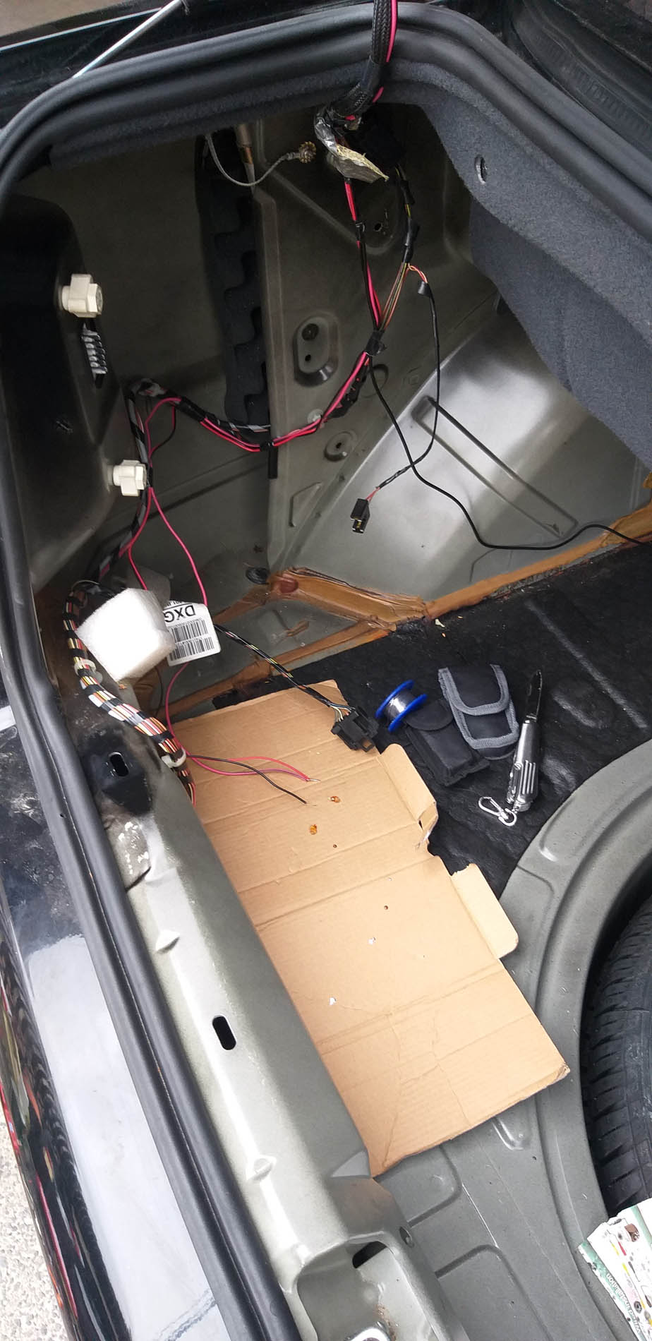 Korzystając, że miałem rozłożoną tapicerkę bagażnika, poprowadziłem sobie też przewód do kamery cofania. Było z tym sporo roboty, odchylania uszczelek, demontażu deski rozdzielczej, ale jakoś w końcu udało mi się ten przewód przeprowadzić: