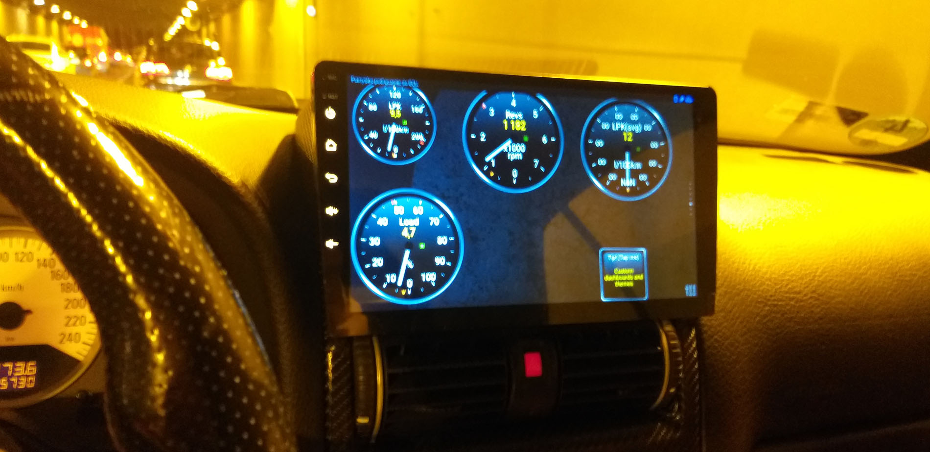 Za to w niedzielę dokładnie wyszorowałem Bertonkę wewnątrz i zewnątrz oraz podłączyłem OBD. Poniżej zrzut ekranu z rozszerzonymi funkcjami komputera pokładowego: widać wskaźniki ze średnim i chwilowym spalaniem: