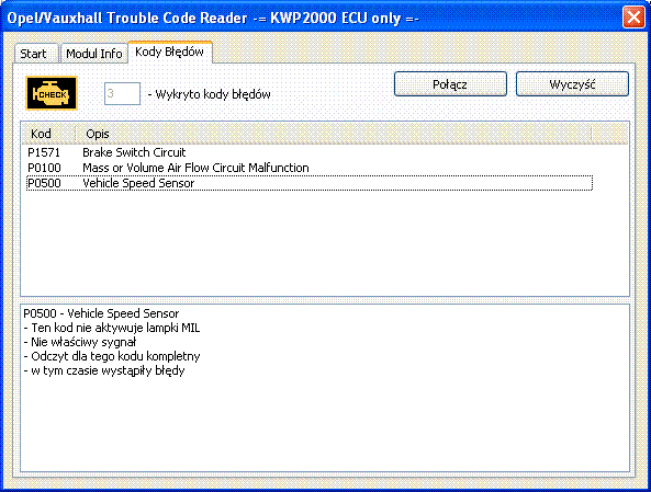 Oczywiście dziękuję kolegom za zainteresowanie moim problemem. Wgląda na to że faktycznie to coś przy lewym kole. Nie mam na razie gdzie sobie to sprawdzić, natomiast pokusiłem się o zakup ELM327 (oczywiście w tej tańszej wersji na usb). Też naczytałem się na ten temat i powiem że może kasy nie dużo ale jednak nie wart tego był ten zakup. Po wielogodzinnych "bojach" udało mi się odczytać kody błędów z mojej Zosieńki. Obawiam się że i to jest coś nie tak, bo wszystkie wykazane błędy nie powodują zapalenia się "check" a jednak się pali? Nie wiem też czy błąd o numerze P0500 który wspomina coś o prędkościomierzu odnosi się do abs i czujnika lewej piasty?