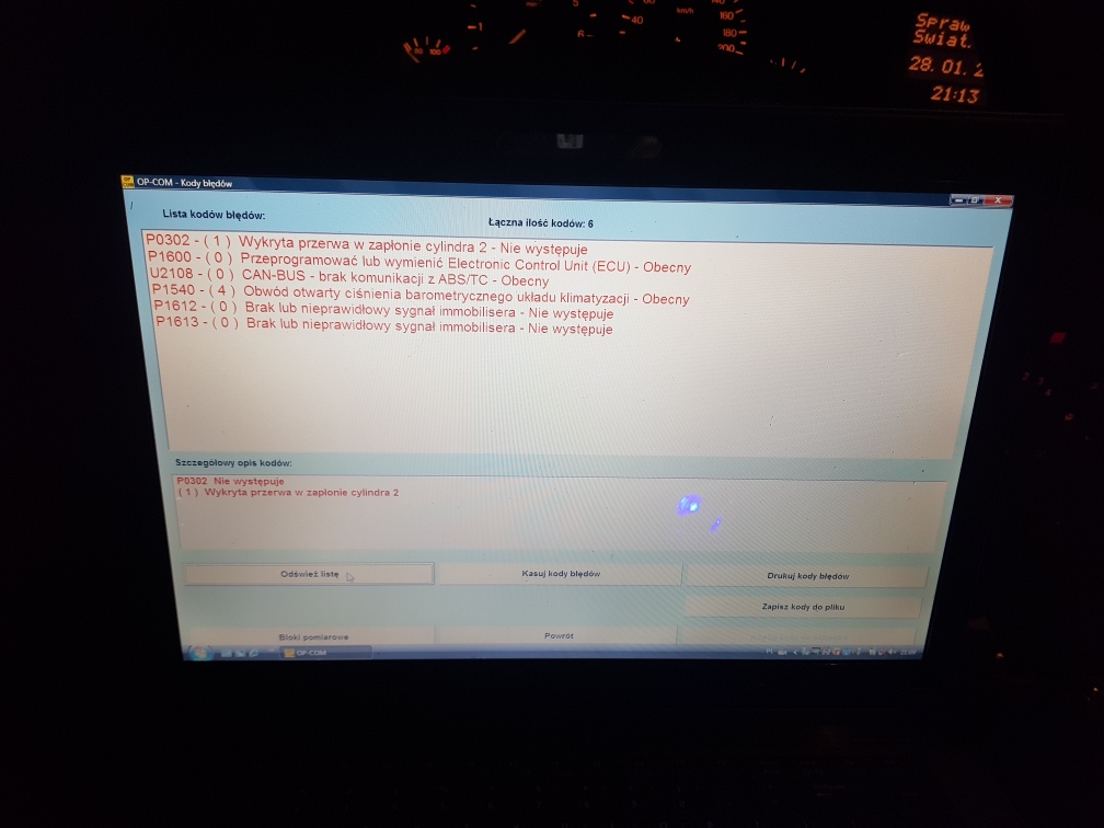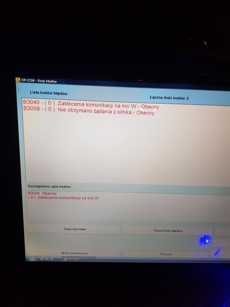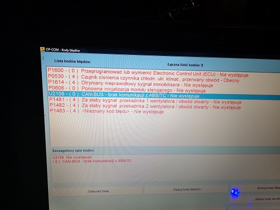 Kupiłem używany sterownik z opla astry i następne błędy: