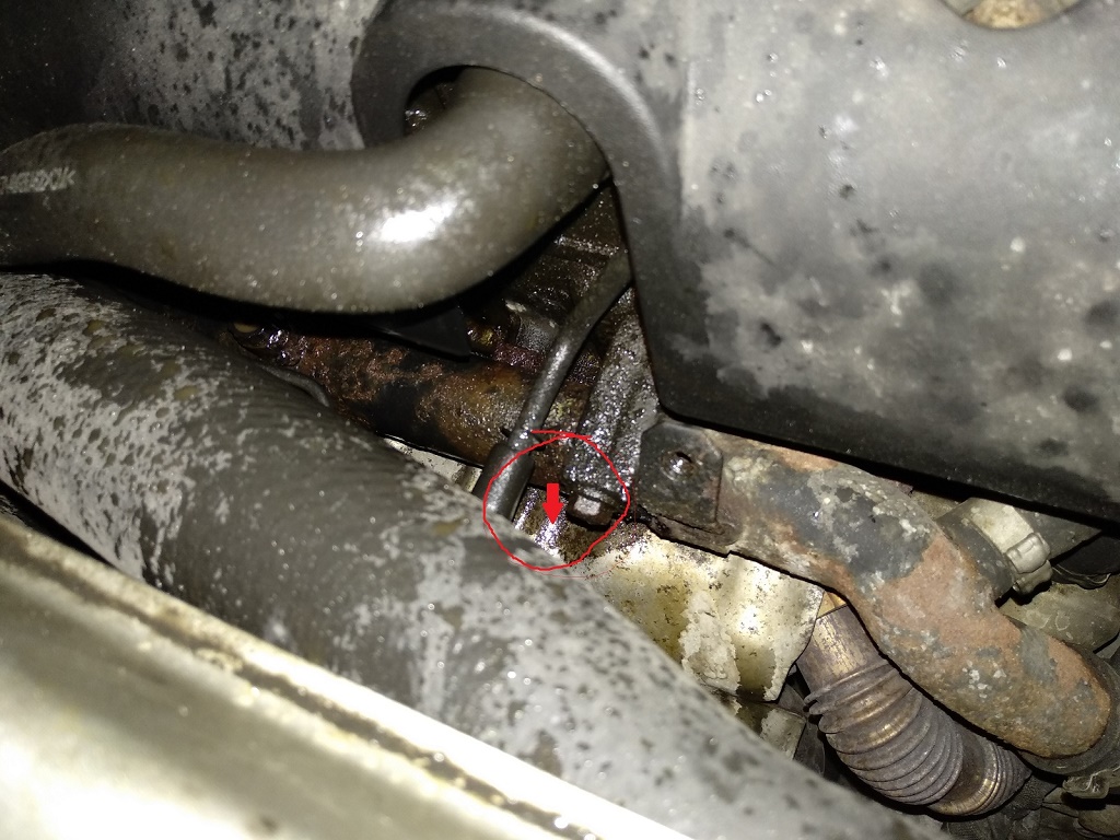 Odpaliłem silnik i zaraz zobaczyłem jak kapie bodajże ?olej? spod jednej z rurek. W załączniku zdjęcia z zaznaczonym miejscem.