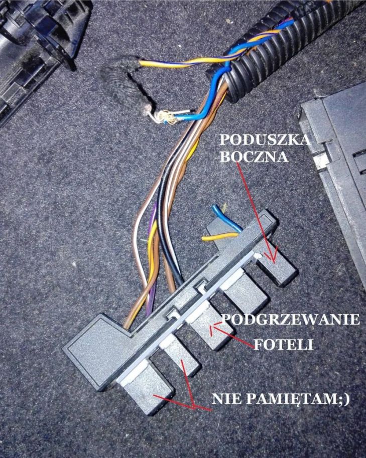 Witam ,klękło mi ogrzewanie fabryczne fotela kierowcy ,potrzebuje opis gniazda pod siedzeniem takie podłużne przymocowane do blachy siedzenia bo tam chyba idą przewody do maty ,Mam jeszcze przymocowany pod siedziskiem czarny prostokącik z 5 przewodami, w środku jest płytka drukowana czy ktoś wie co to jest.?