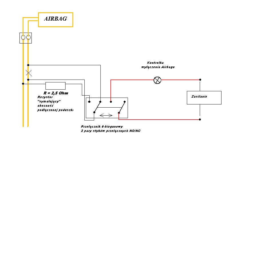 Zostało mi zamontować wyłącznik (jako miejsce typuję schowek żeby nie niszczyć kokpitu), rozciąć obwód airbagu oraz wlutować opornik.