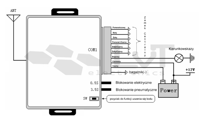 Wystarczy podpiąć się pod te same przewody, pomijając elementy po prawej stronie czyli czujniki i syrenę. Nie będzie tam również sygnału blokady zapłonu.
