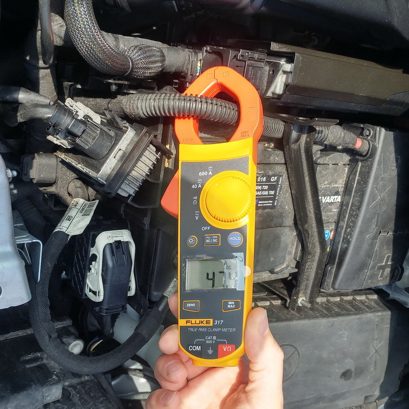 Pomiar prądu(wszystkie odbiorniki wyłączone za wyjątkiem świateł do jazdy dziennej)