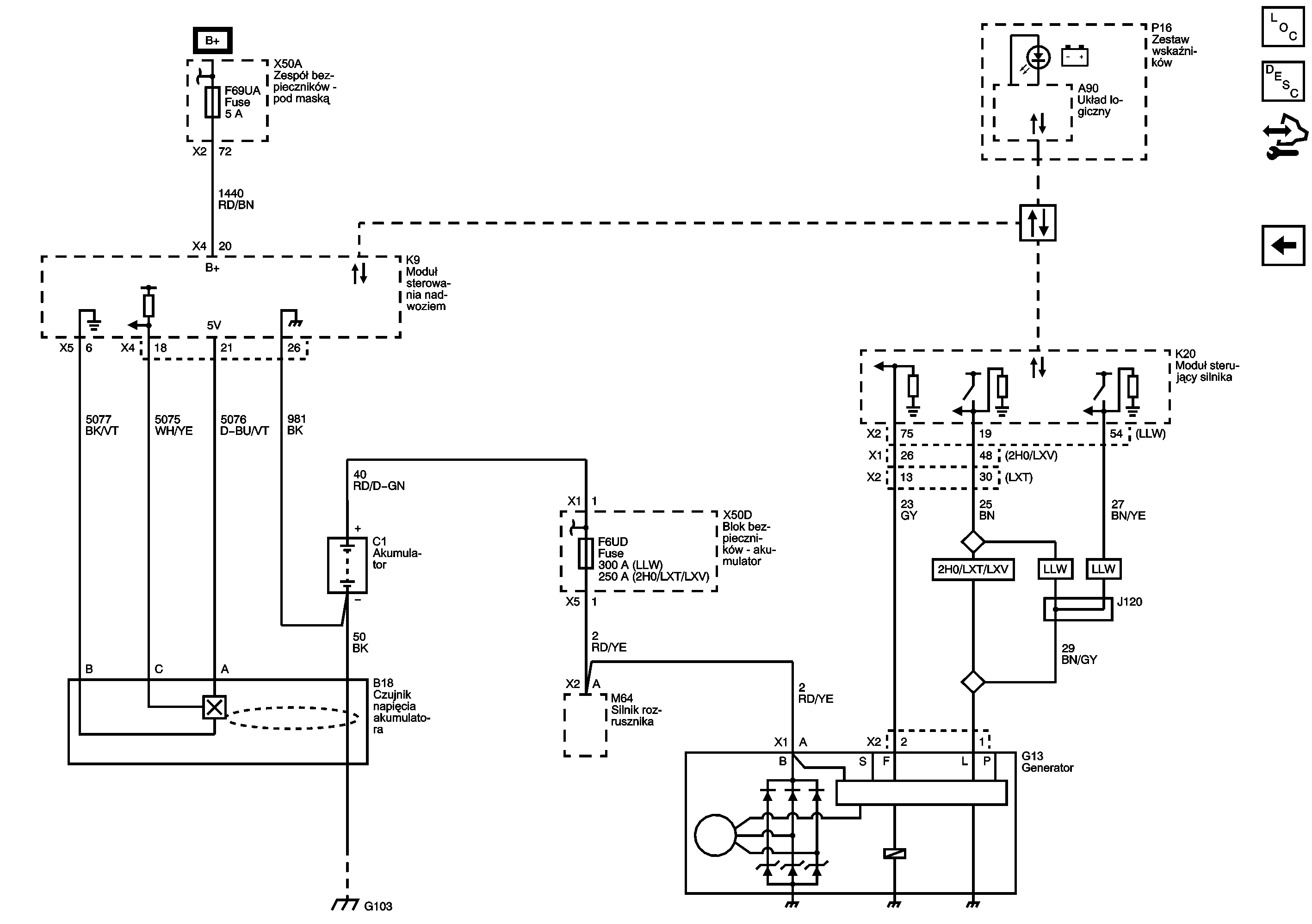prądu(DLR,mijania/drogowe,przeciwmgielne,stop,kierunkowskazy).