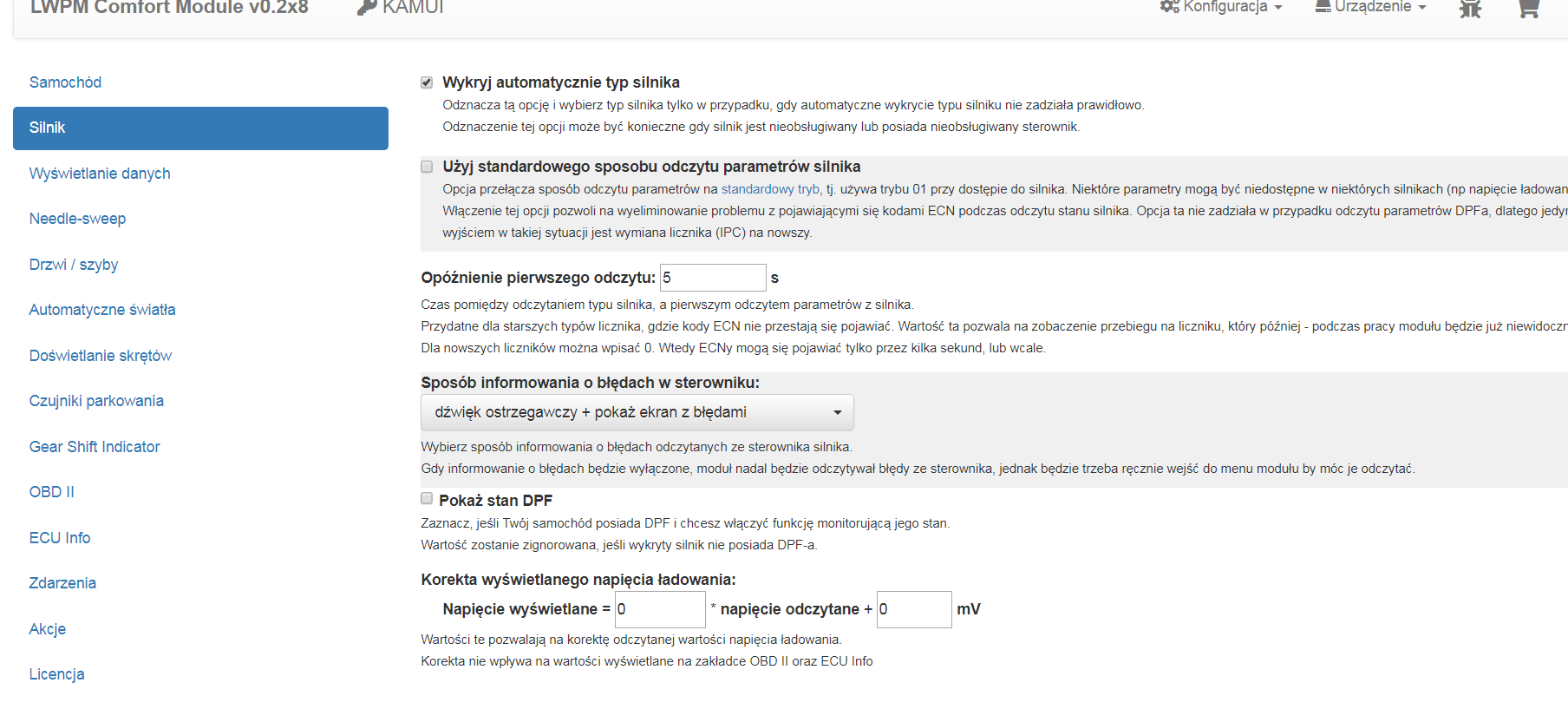 Ktoś doradzi? jak ustawić aby na stronie głównej( zakładka SILNIK) oprócz oznaczenia typu silnika i temp. płynu pokazywało ładowanie aku, jak na razie tylko kreski.