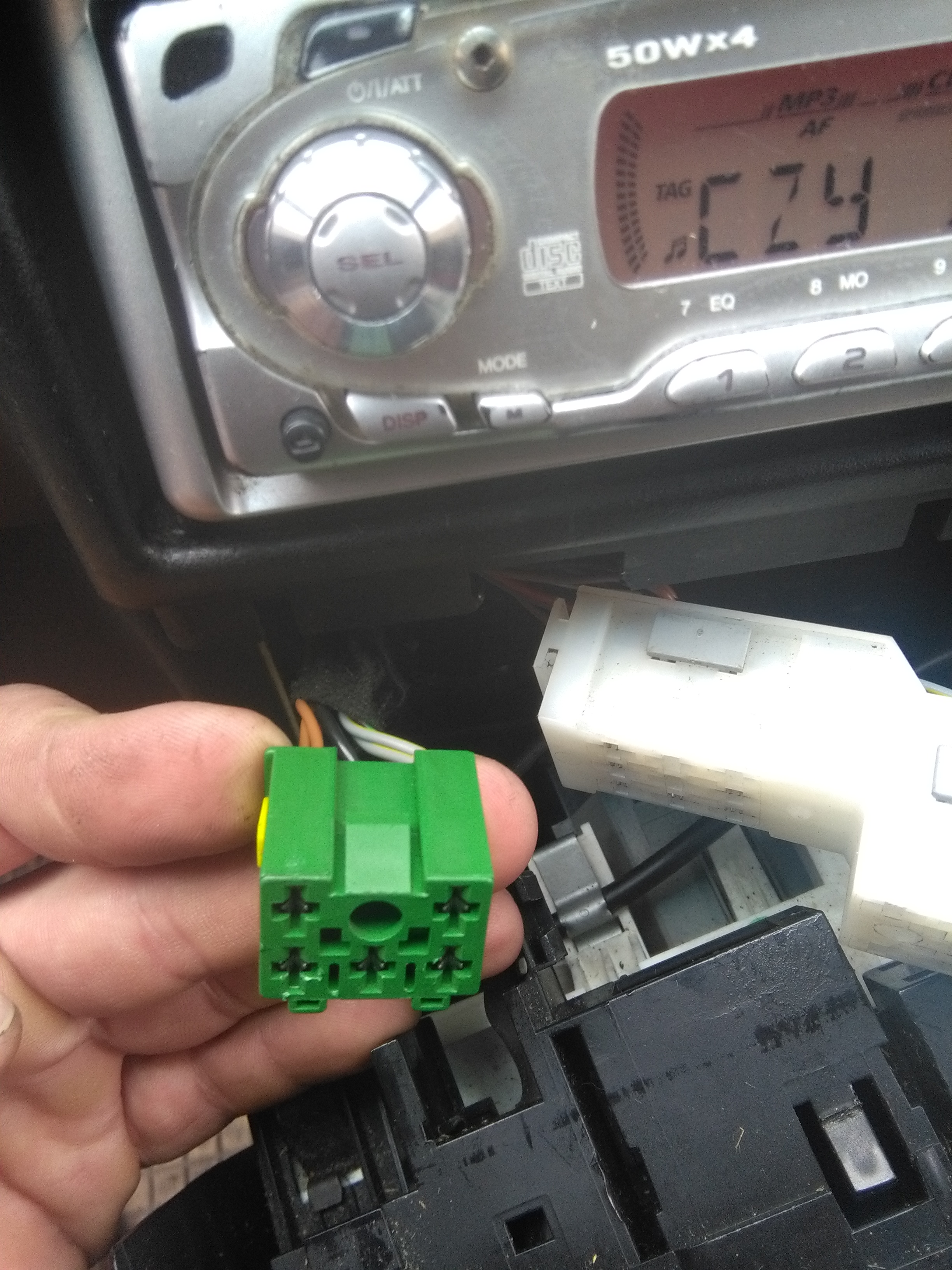 4. 2 kostki /zielona + niebieska/ - nie są od włączników grzania siedzeń bo te mam gdzie indziej, pod tunelem środkowym z prawej strony na wysokości popielniczki