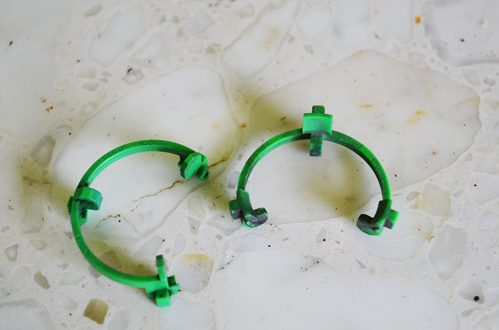 aby zdjąć przewód należy nadusić zabezpieczenia (zielone pierścienie uniemożliwiają to) i przesunąć cały element do tyłu, następnie zsunąć całość z króćca nagrzewnicy