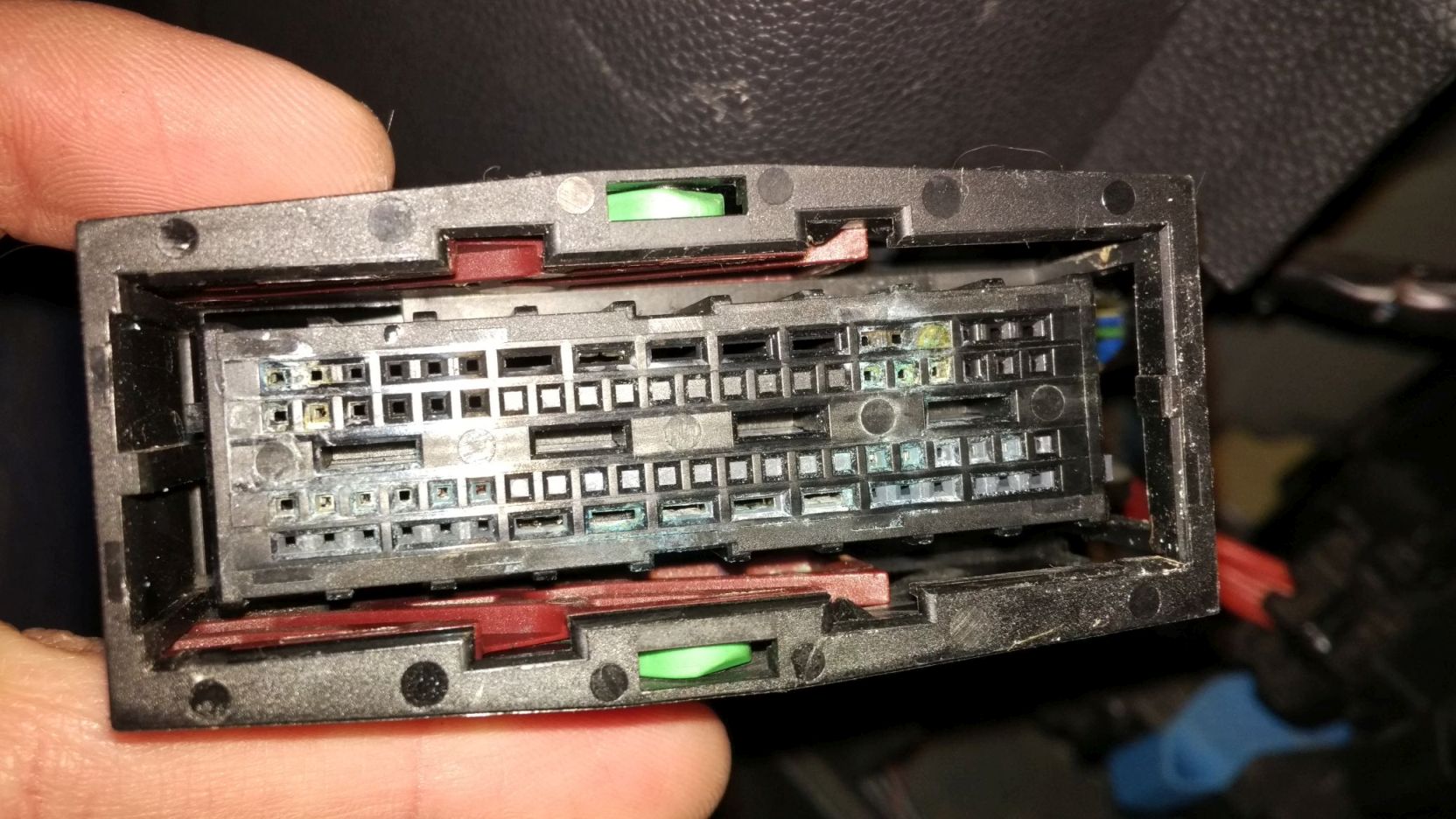 Nie widzę opcji zregenerowania upalonego pinu, dlatego chcę przełożyć przewód w inny wolny pin we wtyczce, a następnie zrobić to samo w zielonym gnieździe modułu REC – tylko jest pewien problem, nie potrafię wymontować tego zielonego gniazda – czy jest to możliwe? Czy może muszę wymontować i rozebrać cały moduł REC? Proszę Was o radę.