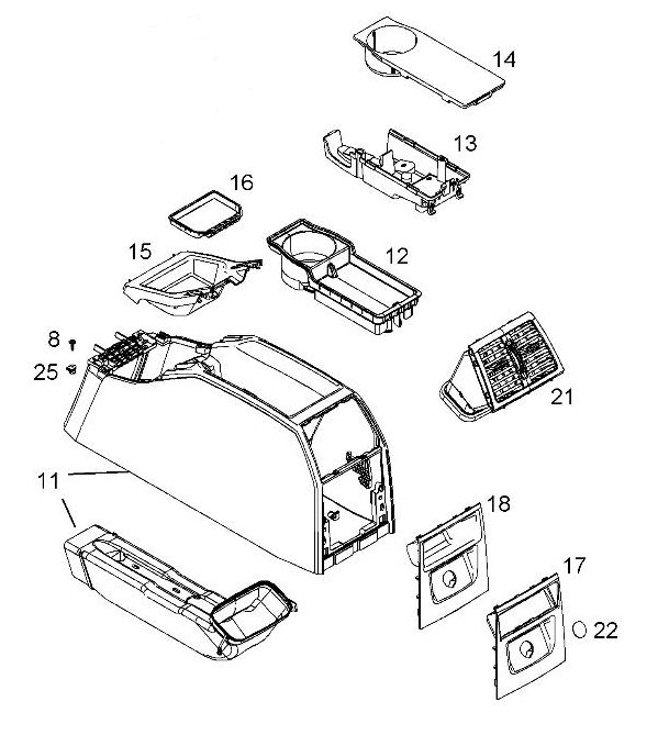 Dzisiaj przy okazji rozbierania plastików zauważyłem, że w pod uchwytem na kubek (elementy 13 i 14 na obrazku od Marcina/Flory) idzie jakiś przewód. Kończy się właśnie w tym elemencie. To jest przecież tylko plastikowy uchwyt na kubek, więc o co chodzi z tym przewodem?