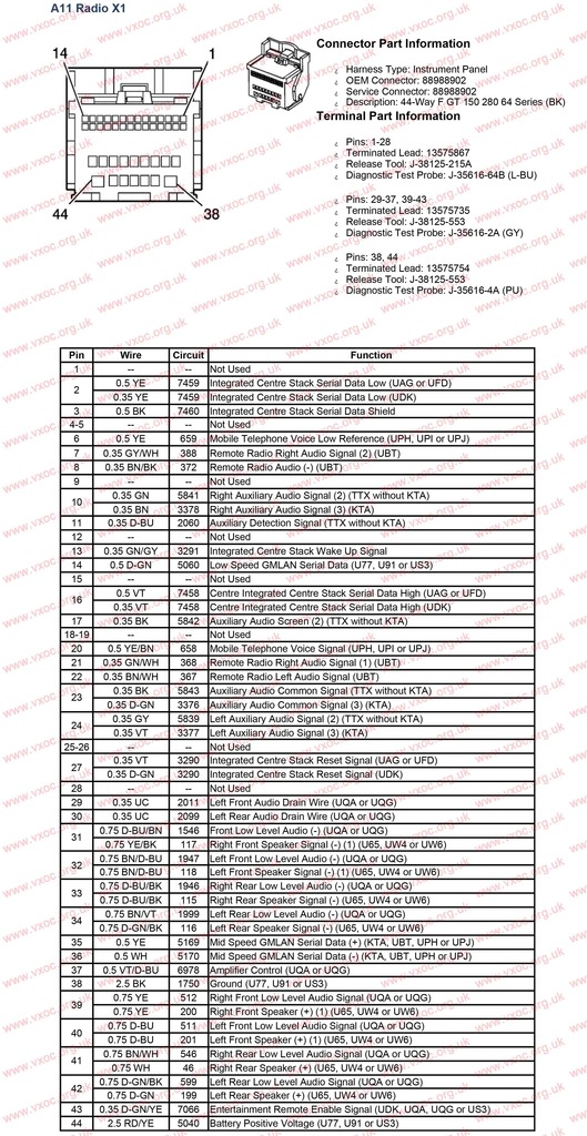 -pin 1 + z akumulatora do pin 44 wtyczki X1 radia