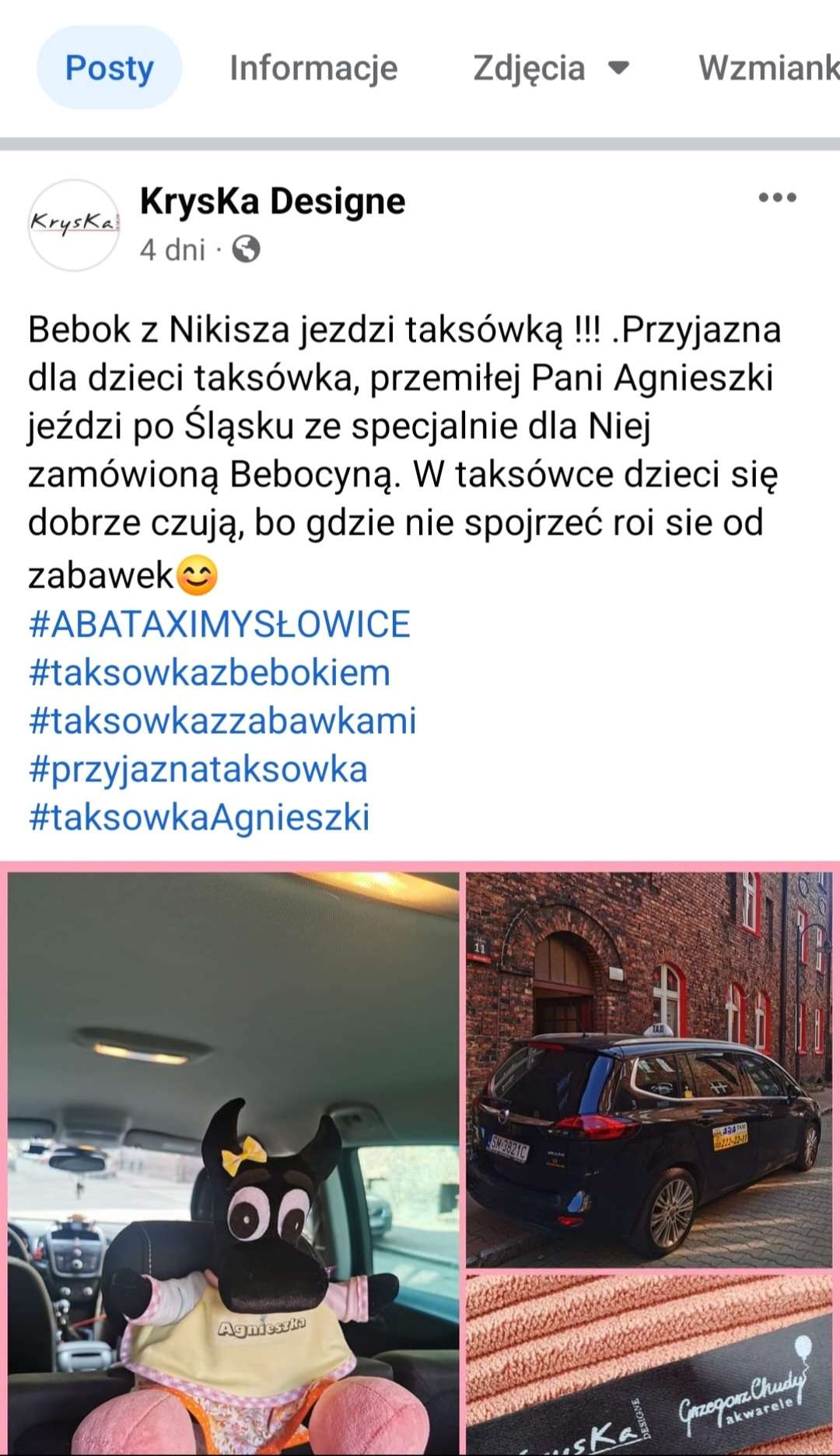 Pani z Nikiszowca ,, Kryska-Designe,, bo zemną jeździ BEBOK zrobiony specjalnie dla mnie. Beboki można spotkać w Katowicach w różnych miejscach i nie tylko. Pozdrawiam wszystkich posiadaczy Zafirek i nie tylko - szerokości na drodze i bezpiecznej jazdy